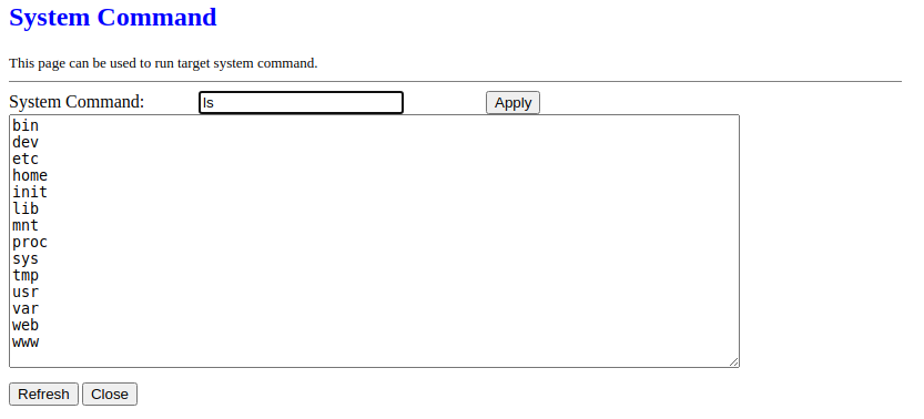The form code is dead simple: receive a command via the sysCmd query parameter, feed it to system(), and return the results from that command within the next page.